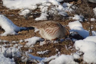 В Твери на февральском лугу «пасутся» серые куропатки