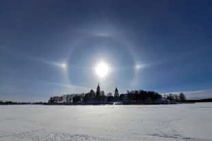 У монастыря в Тверской области запечатлели красивое атмосферное явление