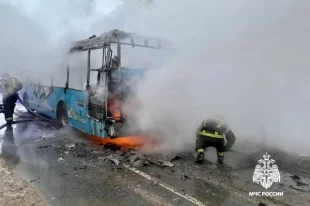 В Твери тушили вспыхнувший на дороге автобус
