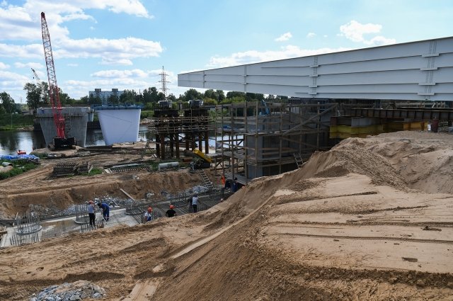 Для левой половины строящегося Западного моста через реку Волгу в Твери завезли все металлические конструкции. Сейчас идёт надвижка и сварка пролётов. Об этом сообщили в региональном правительстве.
