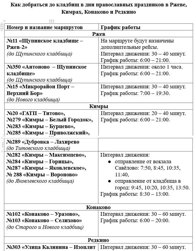 В преддверии Вербного воскресенья, Пасхи и других православных праздников компания «Транспорт Верхневолжья» предпримет дополнительные меры для повышения комфорта пассажиров и обеспечения удобства при поездках на городские кладбища.