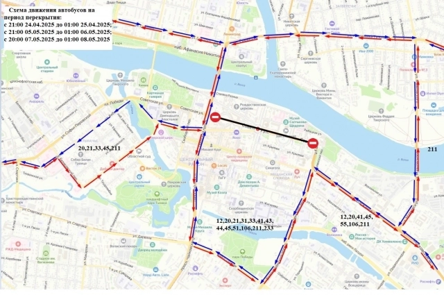 В указанные периоды схема движения автобусов маршрутов №12, 20, 21, 31, 33, 41, 43, 44, 45, 51, 55, 106, 211, 233 будет изменена.