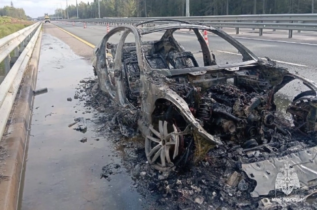 Пожар произошёл на 378-м километре автодороги «Нева». Возгорание ликвидировали сотрудники пожарной части, однако машина сгорела дотла.