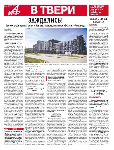 Еженедельник «Аргументы и Факты» № 1-2. АиФ в Твери 14/01/2026