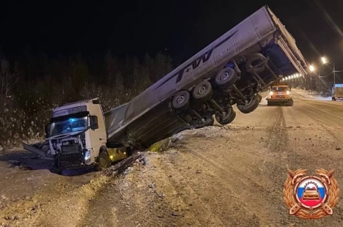 По предварительным данным, грузовик из-за технической неисправности выехал на «встречку» и столкнулся с машиной Lada Largus, после чего обе машины оказались в кювете.