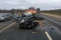 Фото: седан бизнес-класса столкнулся с тягачом в Тверской области