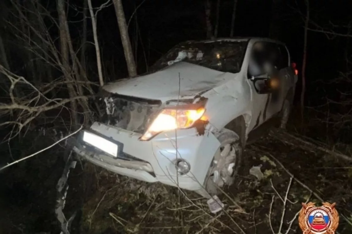 Авария произошла в воскресенье на 5-м километре дороги между Большим Вишеньем и Малым Вишеньем. Водитель автомобиля Toyota Land Cruiser не справился с управлением и съехал с дороги.