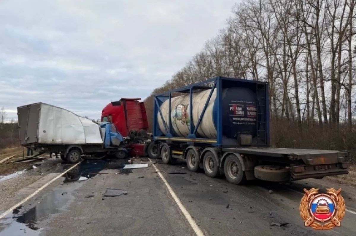 По предварительнвм данным, водитель «газели» выехал на плосу встречного движения и столкнулся с фурой. Сидевший за рулём отечественного грузовика мужчина погиб до приезда медиков. На месте в настоящее время раотают сотрудники полиии и спасатели.