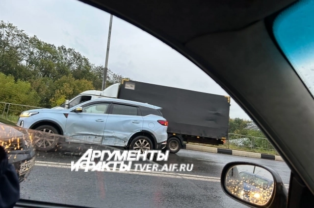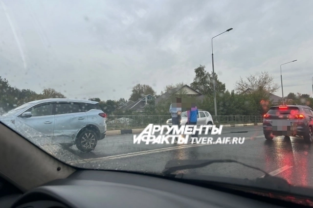 По информации тверичанки на Крупском мосту столкнулись три автомобиля. Один из них оказался на полосе встречного движения.