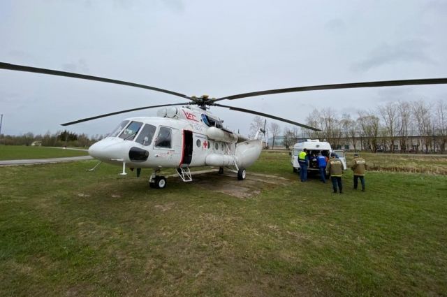 4 мая срочная помощь понадобилась 32-летнему мужчине с тяжелой скелетной травмой, осложненной травматическим шоком. Бригада санавиации ГБУЗ ОКБ эвакуирует пациента из Кашина в Тверь.