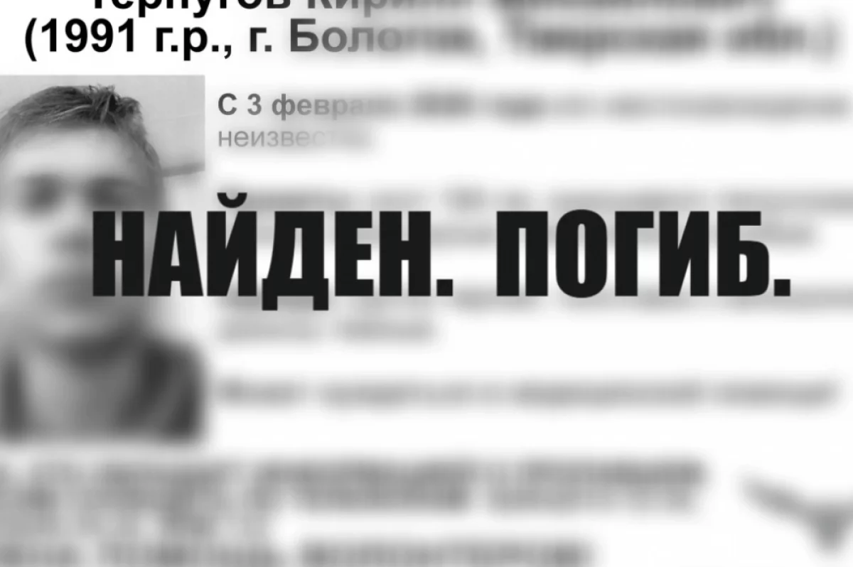 Житель Бологого Кирилл Терпугов найден погибшим. Об этом сообщил ВПСО «Сова».