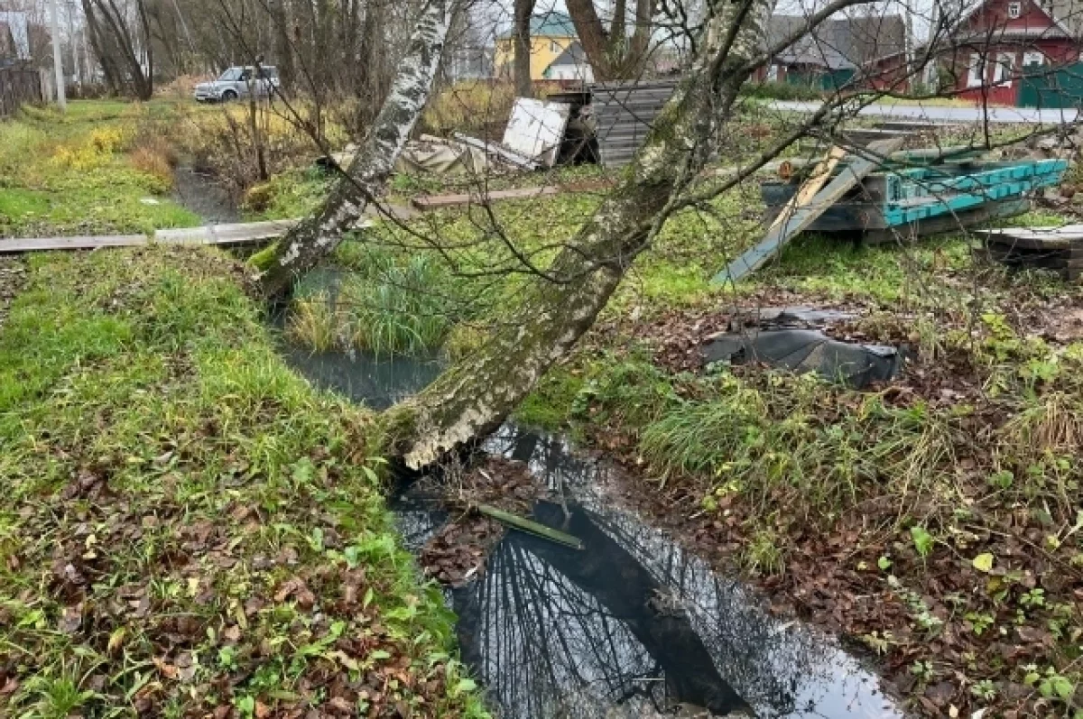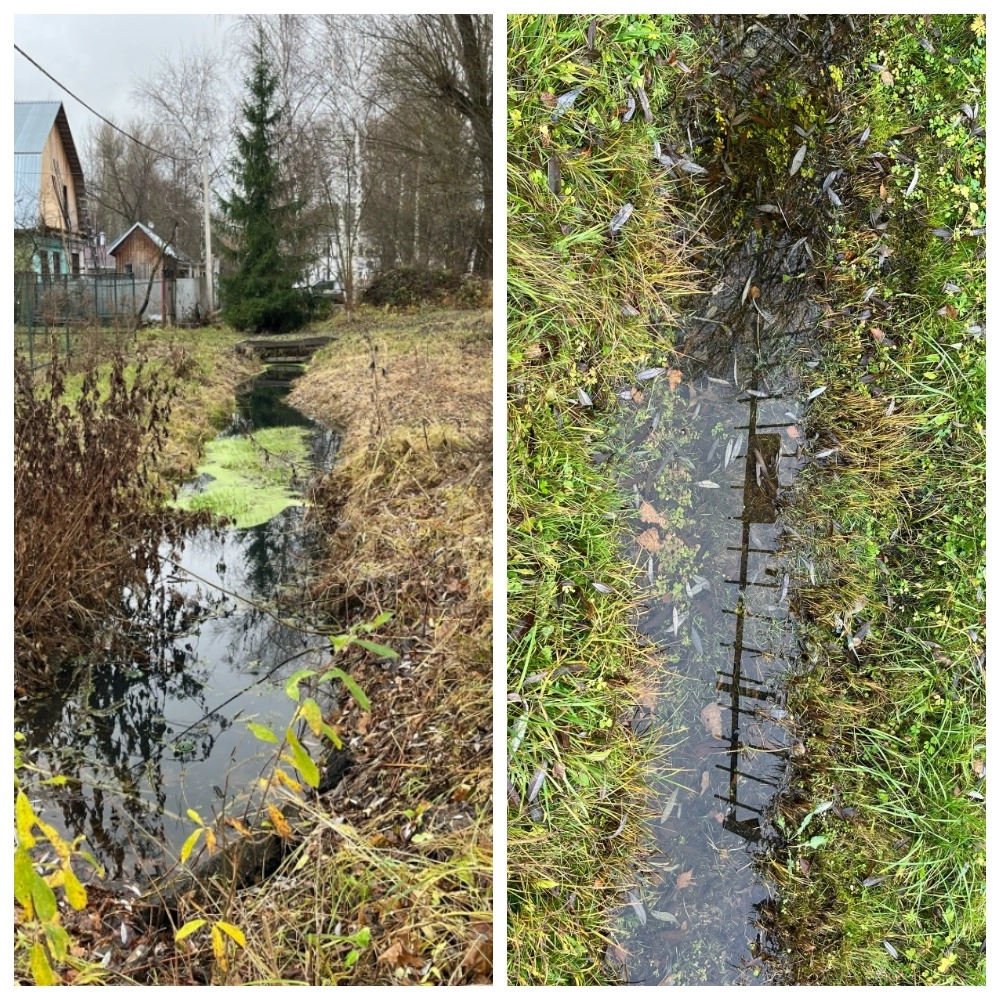 Дренажные канавы систематически заваливаются мусором, зарастают травой и перестают выполнять водоотводную функцию. Это привело к постоянному подтоплению земельного участка дома № 73, где вода доходит до фундамента строения и губит фруктовые деревья на самом участке.