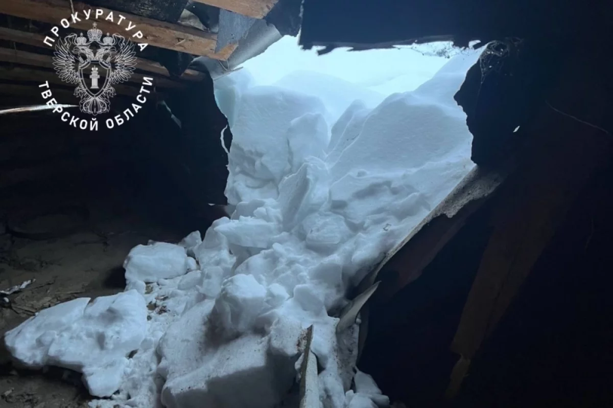 В Кимрах крыша не выдержала тяжести снега, частично обрушился шифер