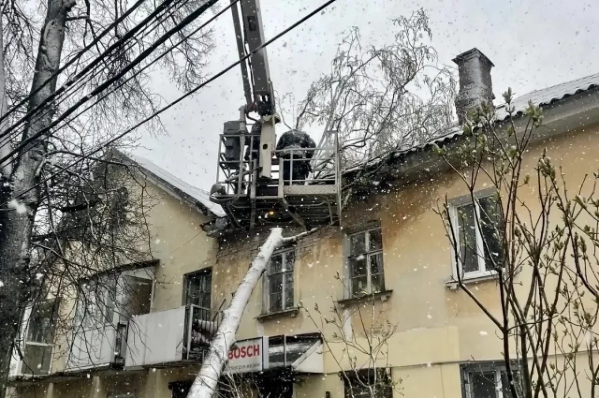 В понедельник, 27 апреля, сотрудники специализированной пожарно-спасательной части убрали упавшее дерево, упавшее на один из домов на бульваре Шмидта в Твери.