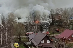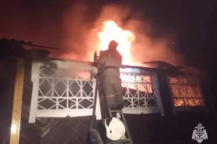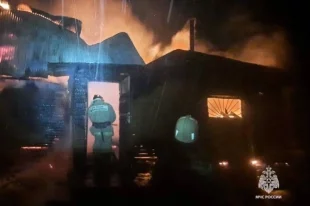 Пожарные поделились кадрами полыхающего дома на Соминке