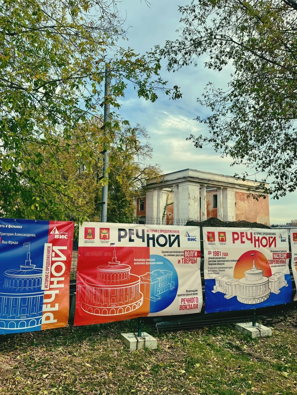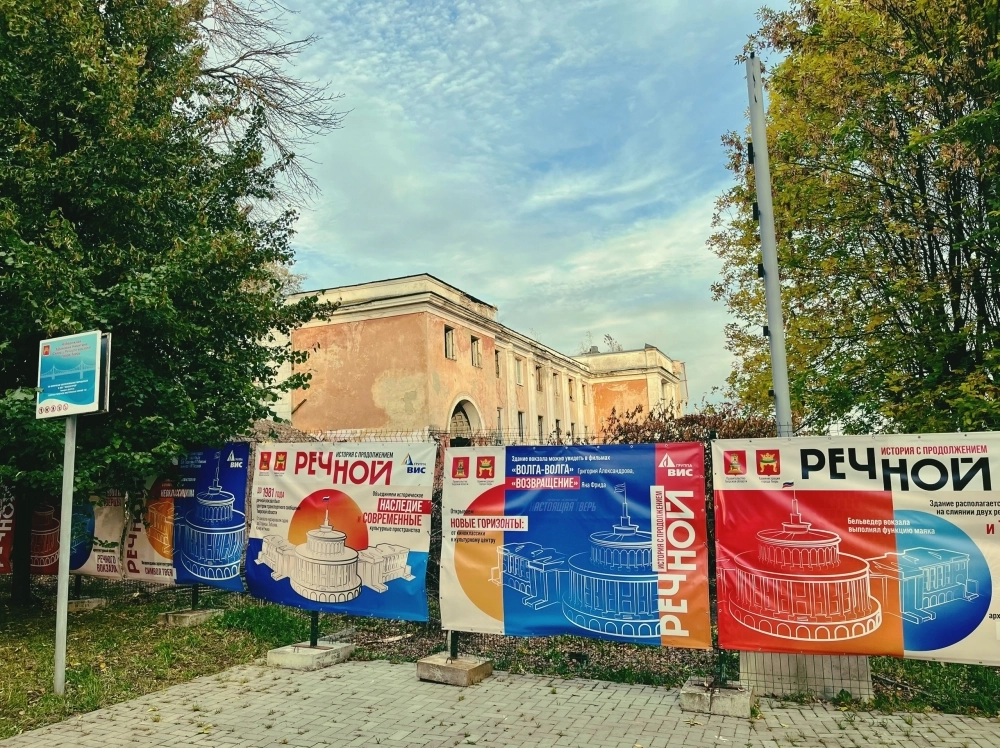 В настоящее время уже завершено обустройство первого этапа строительной площадки и строительного городка. По периметру территории установлены информационные баннеры с историей Речного вокзала.
