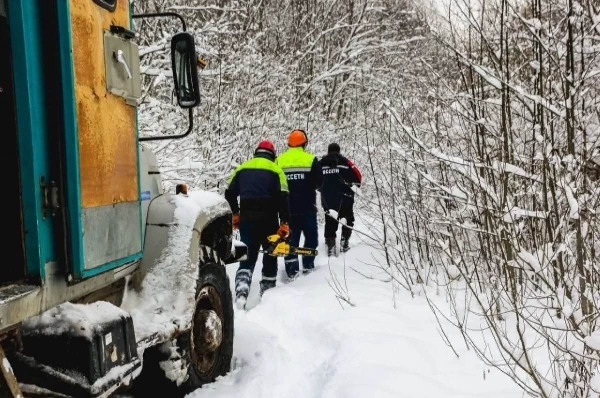Энергетики убирают завалы деревьев, замедляющих работу бригад и спецтехники, производят распил обледеневшей древесины и ремонтируют поврежденные непогодой энергообъекты.
