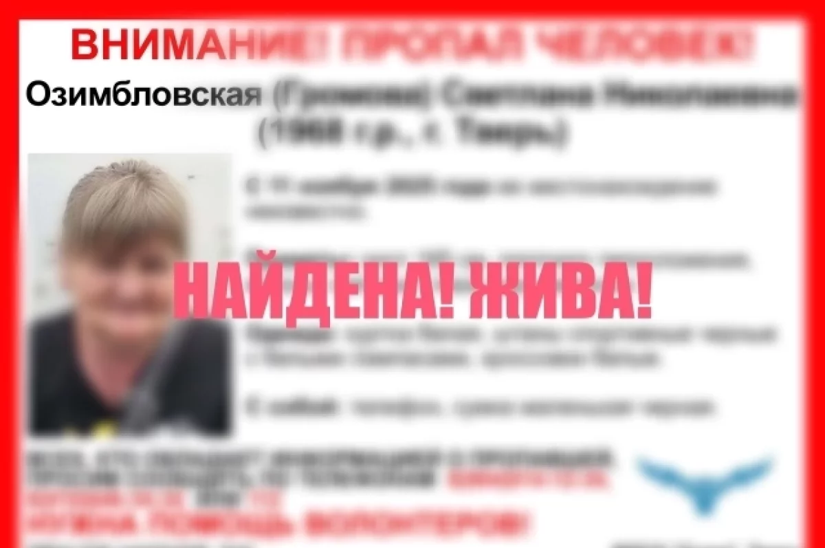 Только спустя почти неделю волонтёры сообщили о благополучном завершении поисков. Женщину нашли живой.