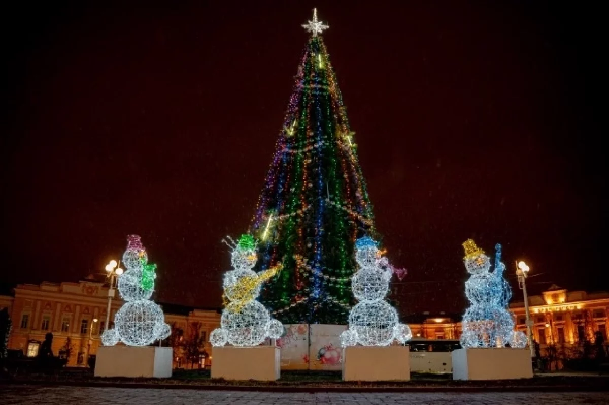 На Комсомольской площади — светодинамический фонтан и елка, а на проспекте Ленина — елки в скверах и на улицах Громова, Строителей, Георгиевской. В Привокзальном районе размещены ещё одна елка и фигуры Деда Мороза и Снегурочки.