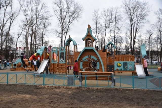 На набережной Афанасия Никитина игровой комплекс выполнен в виде корабля, что вполне логично для территории, расположенной на берегу Волги. Рядом с ним словно вырос сказочный замок «Солнечный город», появились двухсекционные качели. «Площадка классная, мне она очень нравится. Катаемся на горках, играем в прятки, в догонялки. Детей много. Прикольно», – поделилась впечатлениями юная жительница Заволжья Твери Даша.