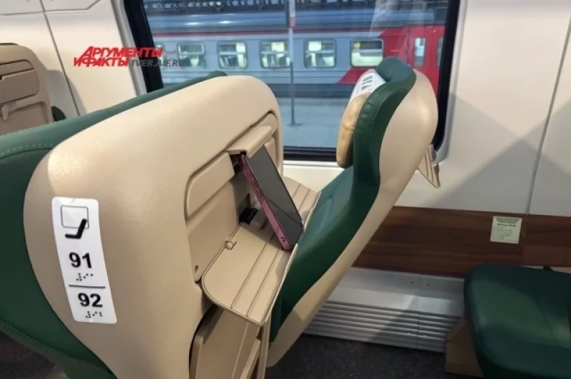 В VIP-вагонах кресла можно разворачивать на 180 градусов. Причём расстояние между ними увеличено, и это существенно повышает комфорт. Есть подставка под гаджеты, столик с подставкой для ног, душ и гладильная доска. Впрочем, и в обычных вагонах предусмотрены все необходимые удобства. Например, вещи можно разметить на вешалке в гардеробной. Также в составах предусмотрены специальные купе для пассажиров на колясках и сопровождающими.