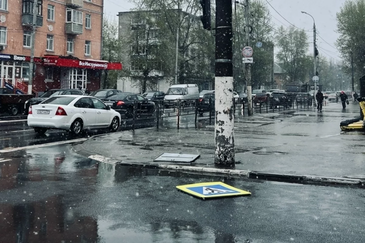 В Твери ветром продолжает сдувать знаки со столбов