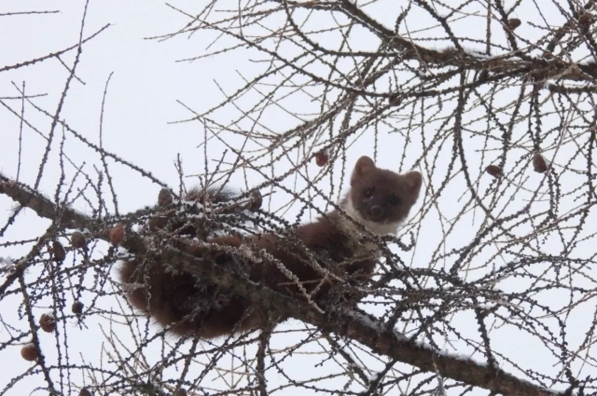 Куницу удалось заметить благодаря встревоженной реакции местных птиц — синиц и ворон. Синицы откровенно дразнили зверька, проявляя провокационное поведение, тогда как вороны пытались выгнать потенциальную угрозу.