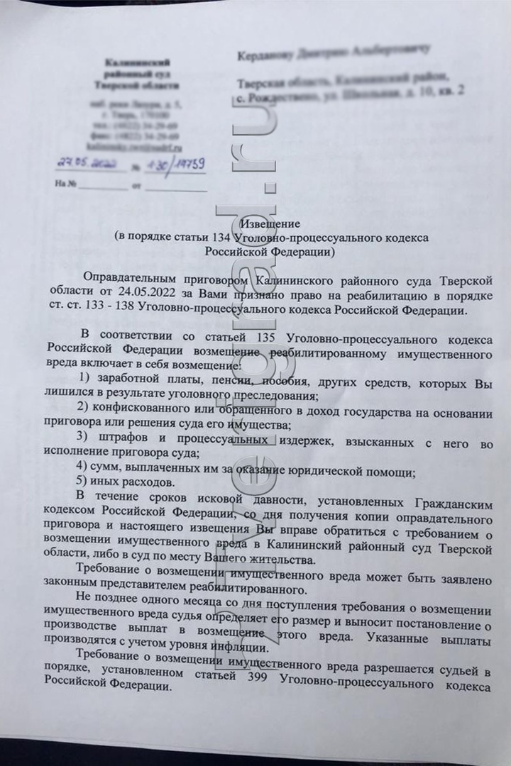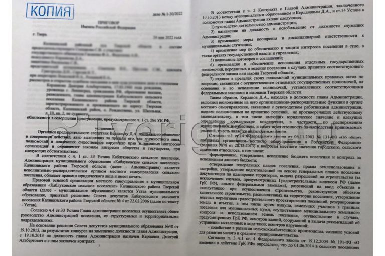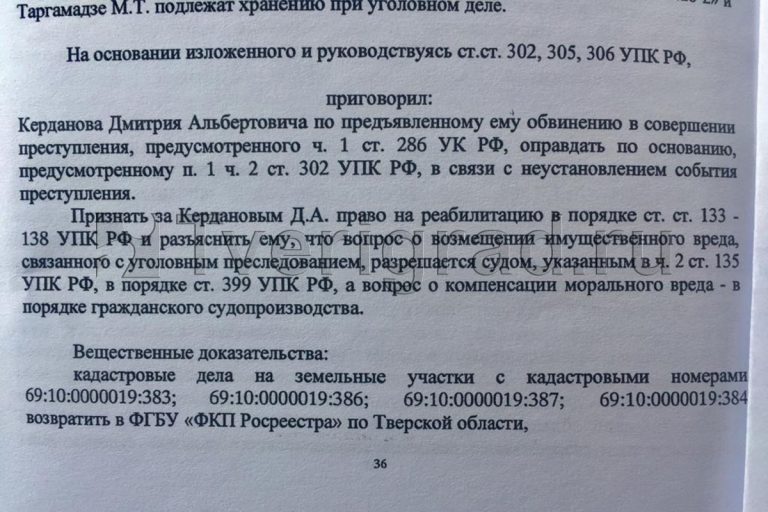 Глава Каблуковского сельского поселения Дмитрий Керданов оправдан. Об этом сообщили в издании Tverigrad.ru.