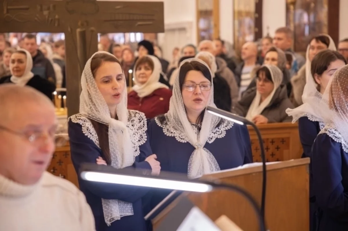 Богослужение сопровождало пение архиерейского хора Спасо-Преображенского собора под управлением Татьяны Дмитришиной.