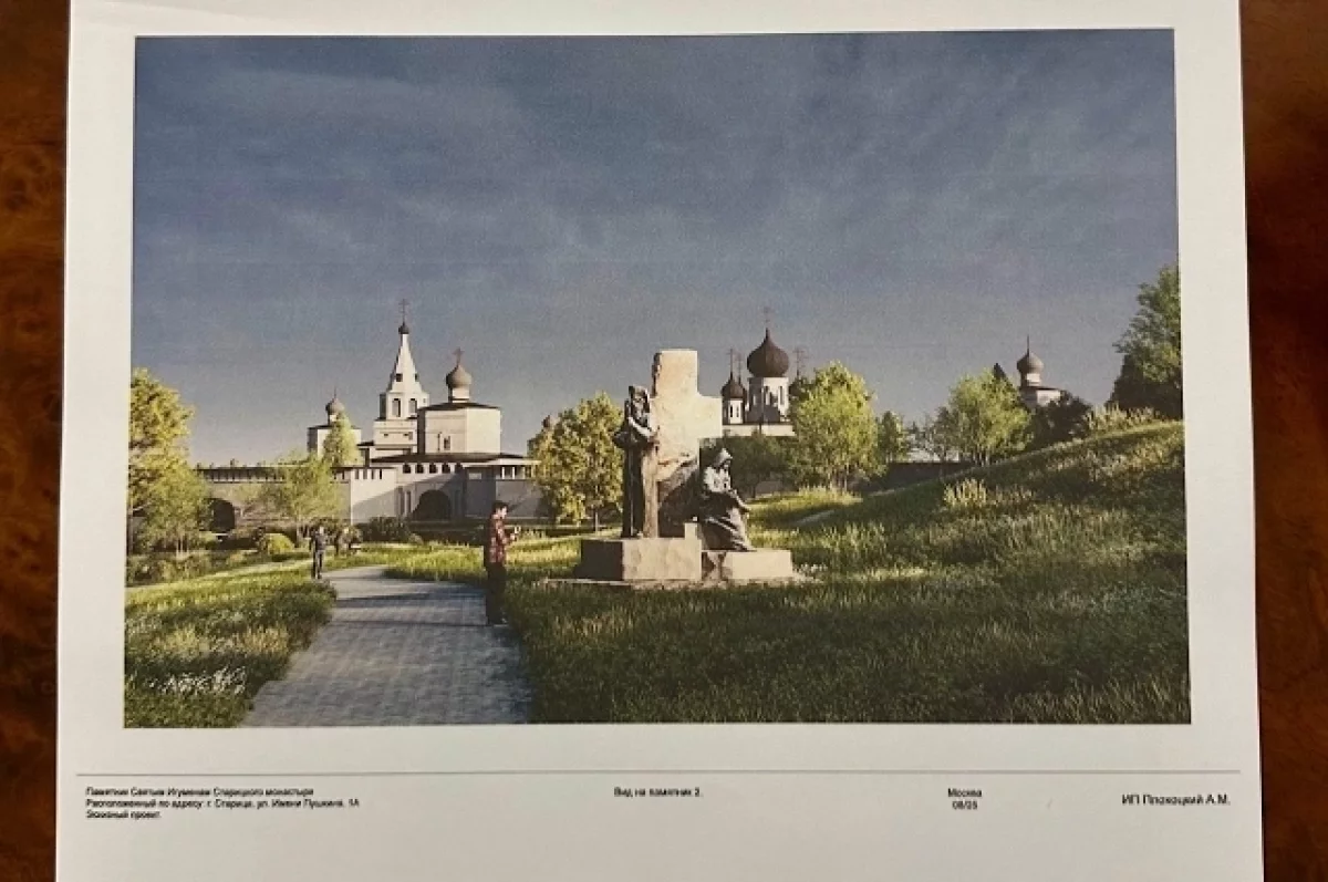 Памятник разместится в Старице, на улице Пушкина, 1А. Авторы эскизного проекта — А.М. Плохоцкий, М.М. Плохоцкий, Д.В. Прокофьев и А.Д. Прокофьев.
