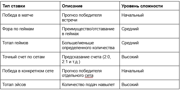 Типы ставок на теннис