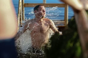 Первые желающие уже окунулись в ледяную крещенскую воду.