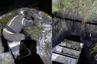 Они с помощью лестницы спустились вниз и успешно извлекли животное.