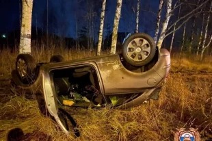 На М-10 в Тверской области автомобиль съехал с дороги и перевернулся