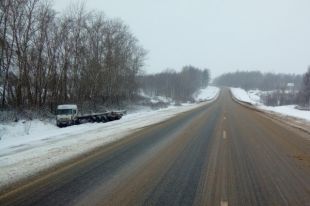 Грузовик Iveco угодил в кювет на М-9 в Ржевском районе Тверской области