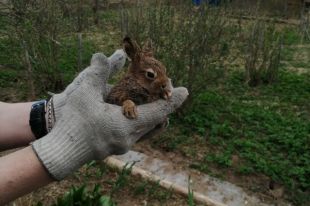 Жители Удомли Тверской области, убираясь на дачном участке, нашли зайчонка